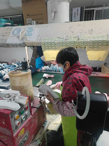 下料车间、半成品仓库、成型A车间、成型B车间、过胶车间、针车车间